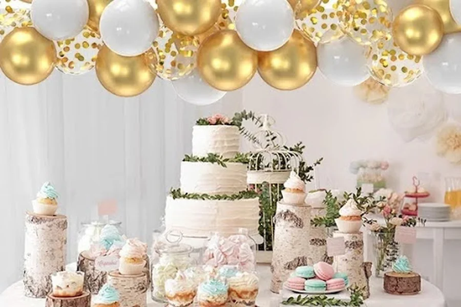 Balloon walls are perfect for creating a striking focal point. In 2025, ombre gold walls are trending, blending light champagne at the top into rich metallic gold at the bottom. These walls can serve as a backdrop for photos, desserts, or even the main stage. Adding greenery or subtle fairy lights can enhance the luxurious effect.
